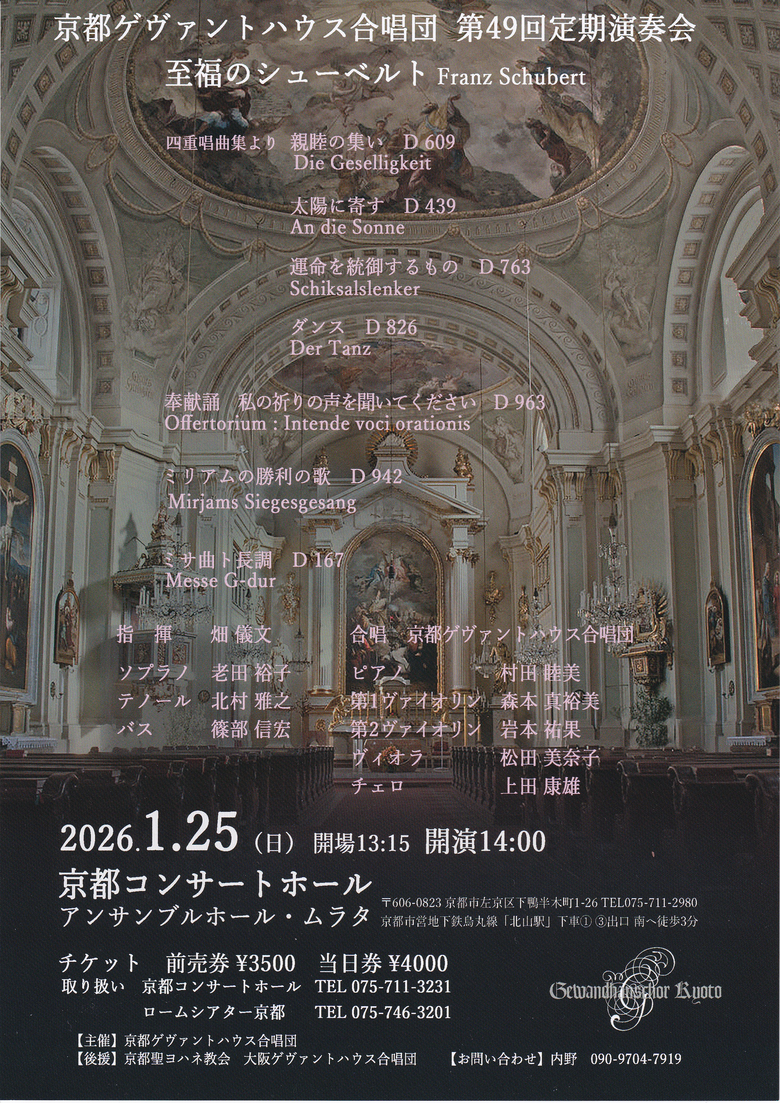 曲目:F.シューベルト ミサ曲第2番 ト長調 他